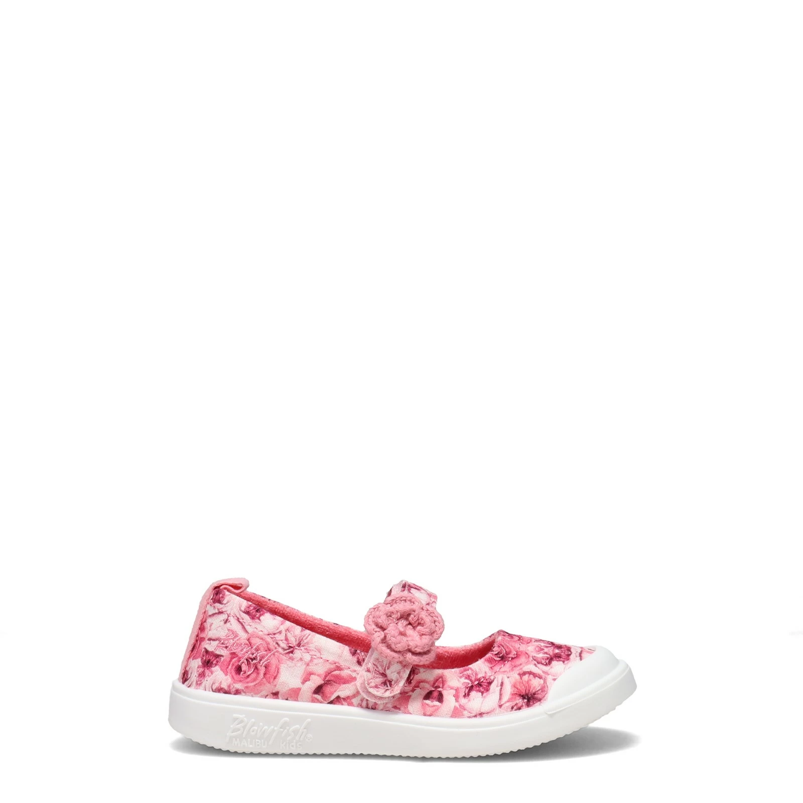 Girl’s Blowfish Malibu, Viola-T Slip-On – Toddler & Little Kid. The Viola-T is a lightweight, mary jane style shoe with a flexible rubber outsole and a hook and loop closure strap for easy on/off. This cute flat has a canvas upper, crochet flower decoration and traction patterns on the bottom to help her navigate slick or slippery surfaces.