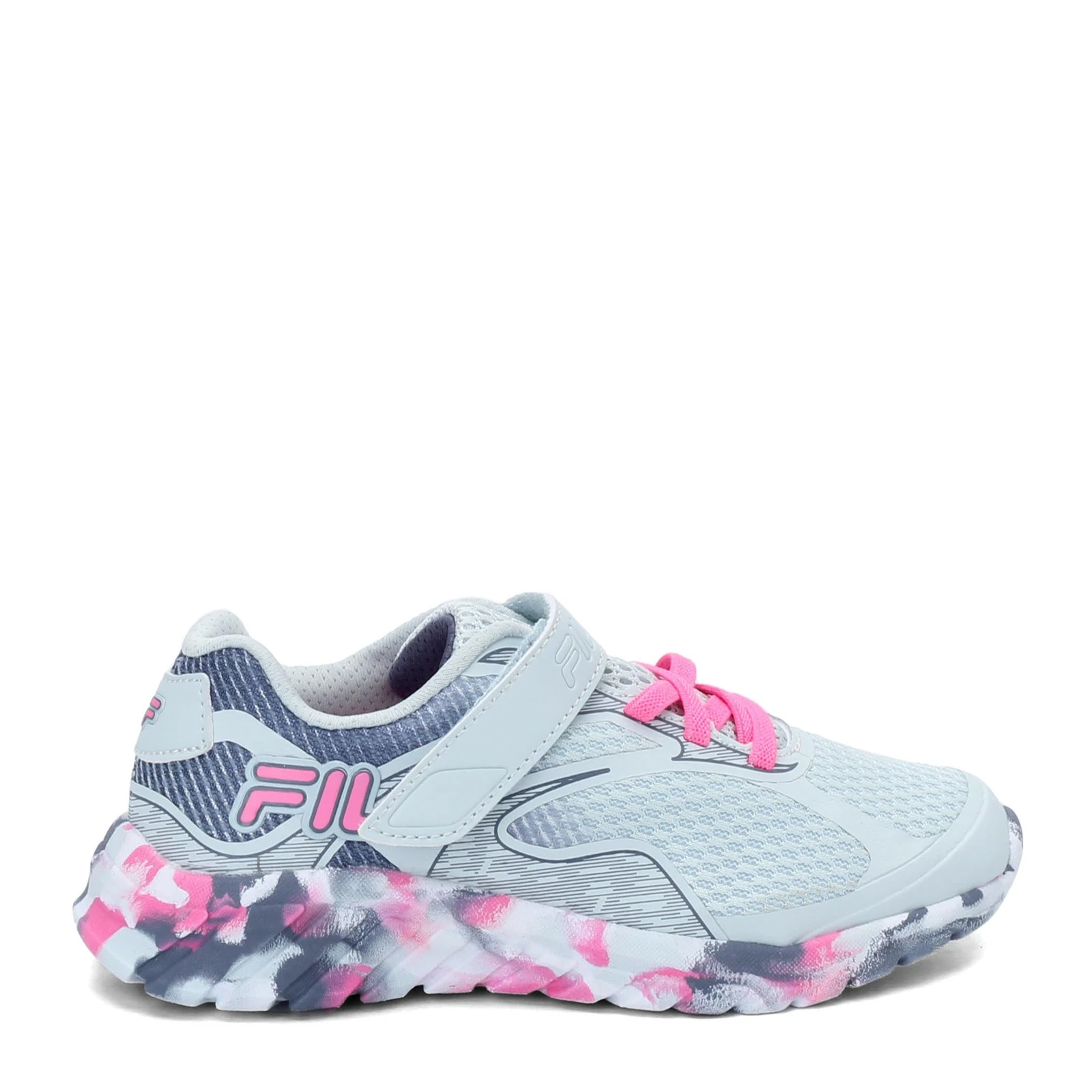 Girl’s Fila, Primeforce 4 Strap Sneaker. She will be running around on the playground in comfort wearing these cool and comfortable sneakers. The hook and loop closure strap allows for easy on and off with total adjustability.