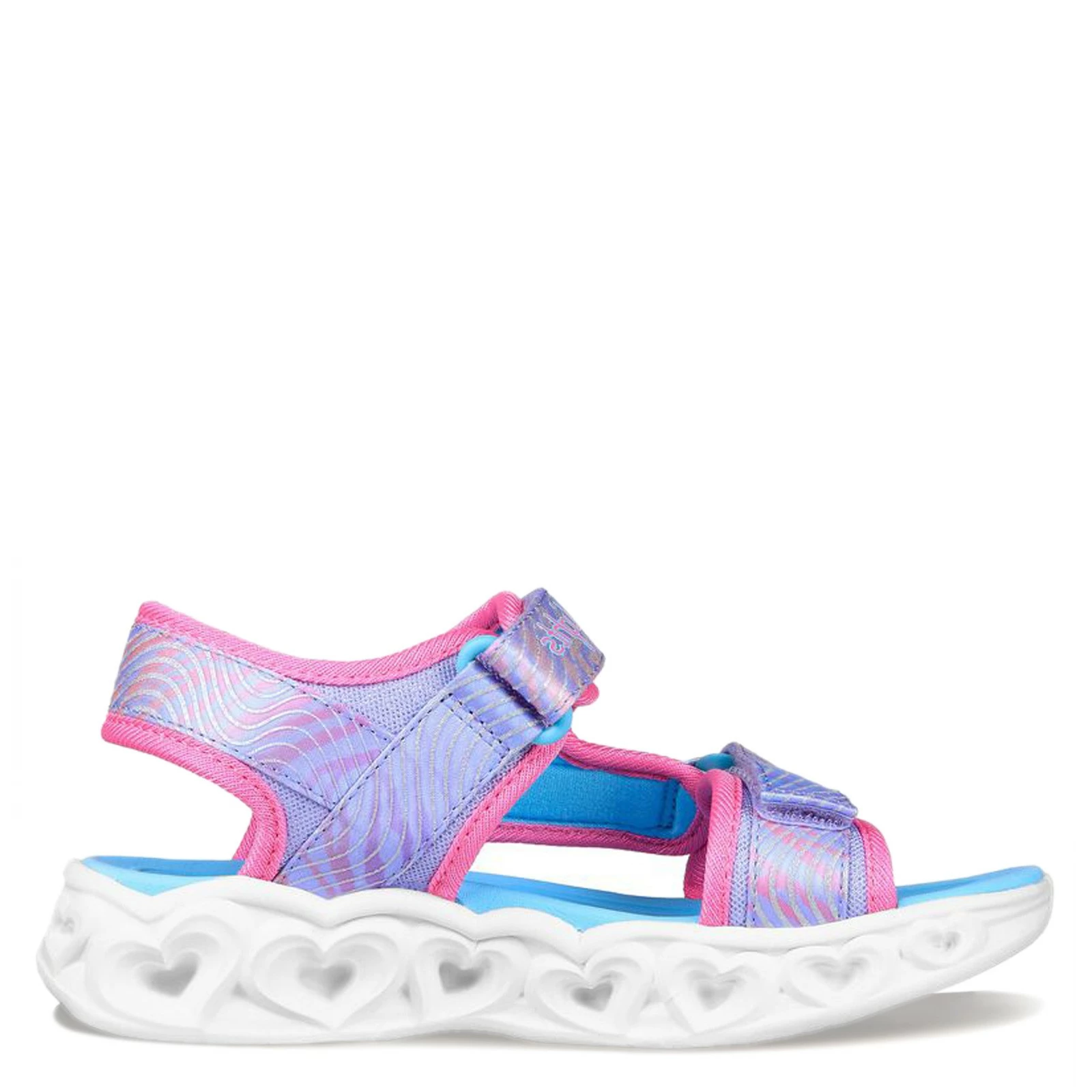 Girl’s Skechers, Heart Lights Sandal – Shimmer Spirit Sandal – Little Kid & Big Kid. She will love the colorful heart lights on the midsole that blink and chase with every step! This fun sports sandal also features a textured metallic upper with fun heart charm.