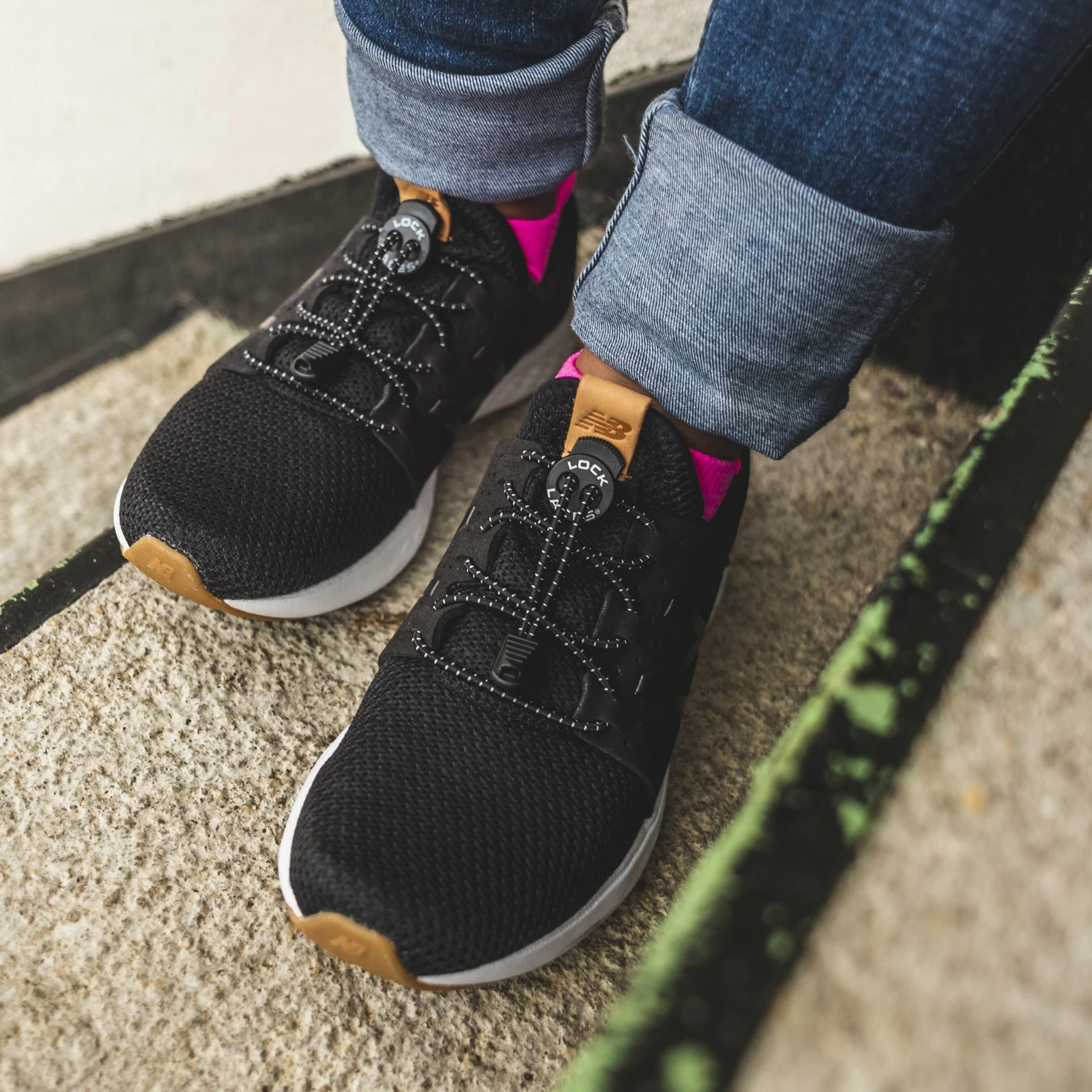 Lock Laces, Black No Tie Shoelaces. Black Lock Laces® go with any shoe or outfit combination. Tiny white tracers line the laces, adding style, character and dimension.