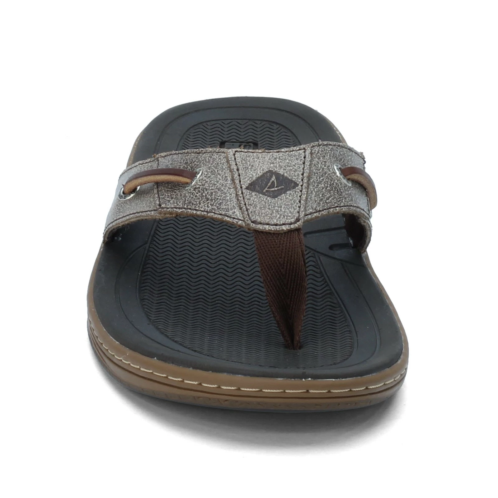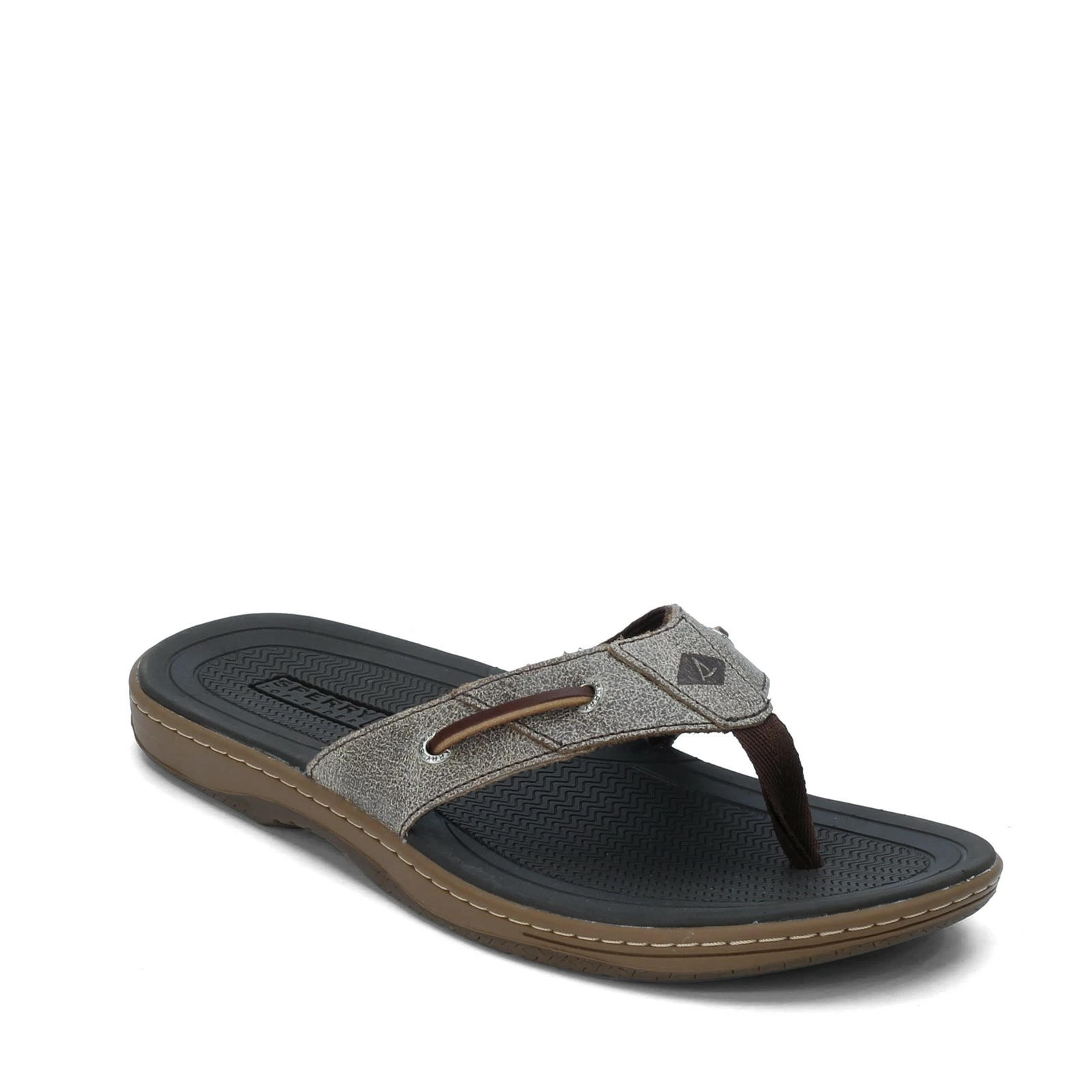 Men’s Sperry, Baitfish Sandal. Slip these nautical inspired flip flops on and lounge the day away at the beach. This laid back sandal offers excellent traction on wet or dry surfaces with a molded rubber bottom featuring adaptive Wave-Siping traction pattern.