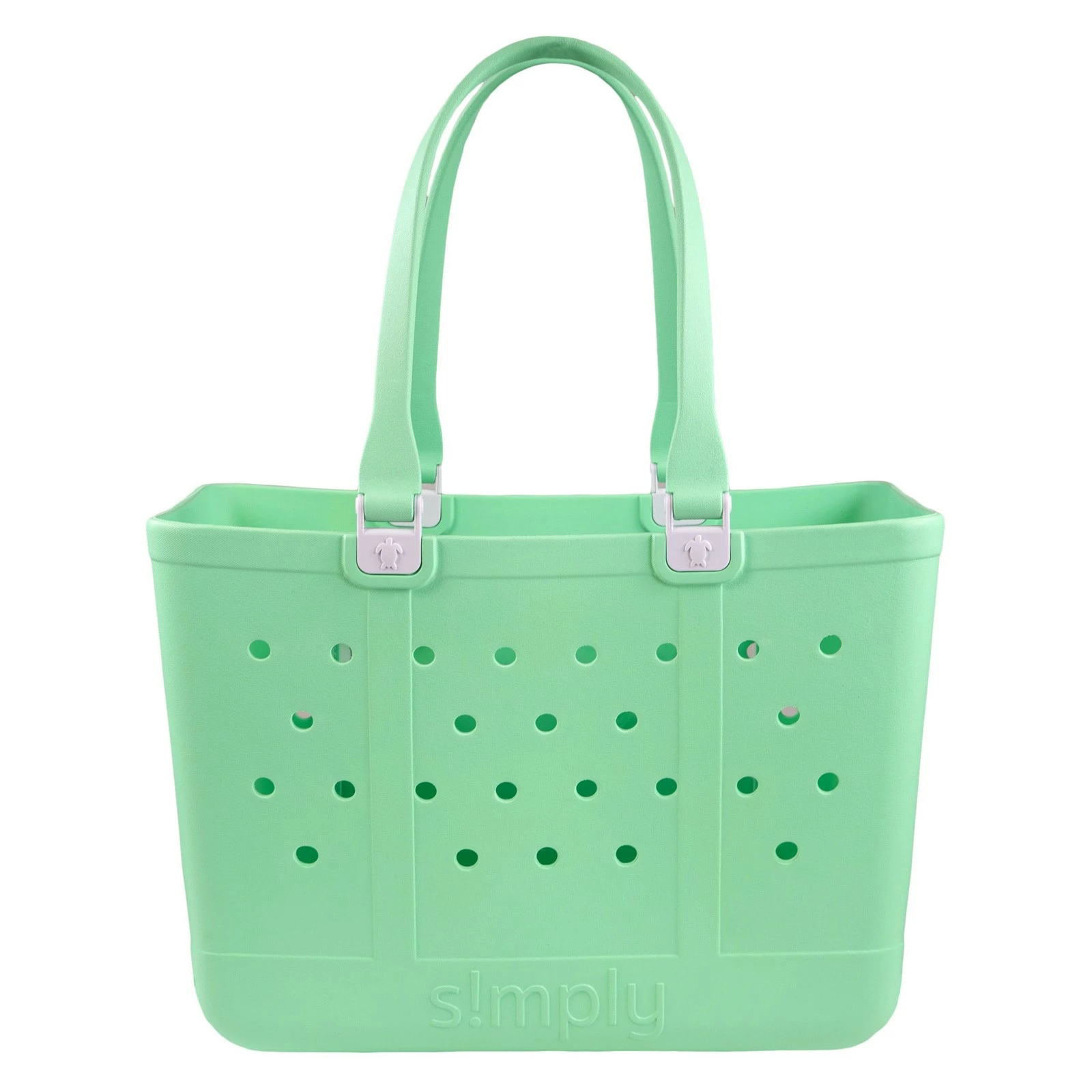 Simply Southern, Large Tote Bag. Carry all of your essentials in this large EVA tote bag! You’ll love this large bag with removable handles, holes for charms, and a grip bottom design to keep it from tipping over.