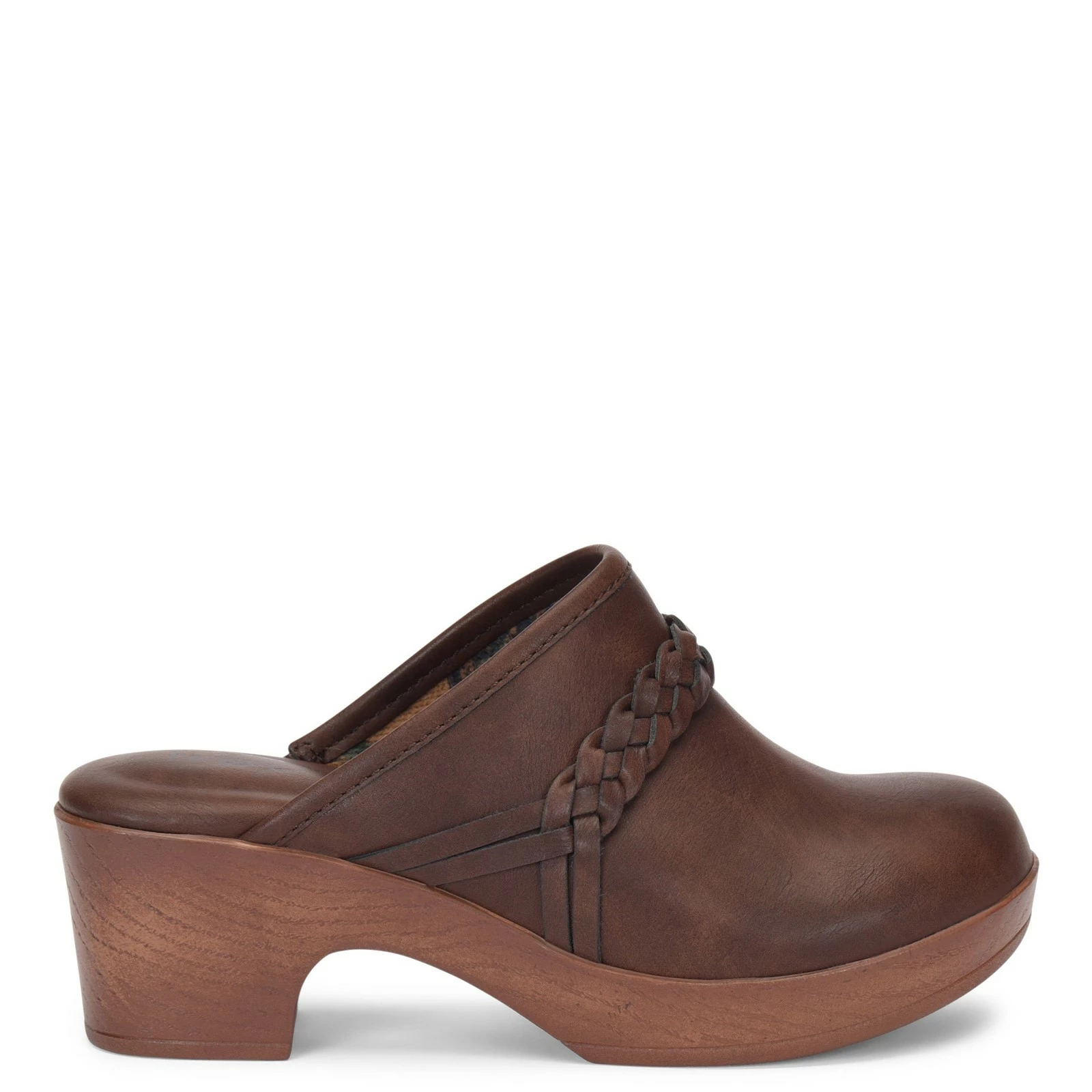Women’s b.o.c, Journi Clog. The Journi Clog has a burnished hand-finished upper and features pretty braided accents and a floral printed velvet lining. The soft footbed with extra foam provides added comfort while the wood grain design heel and wedge add style.