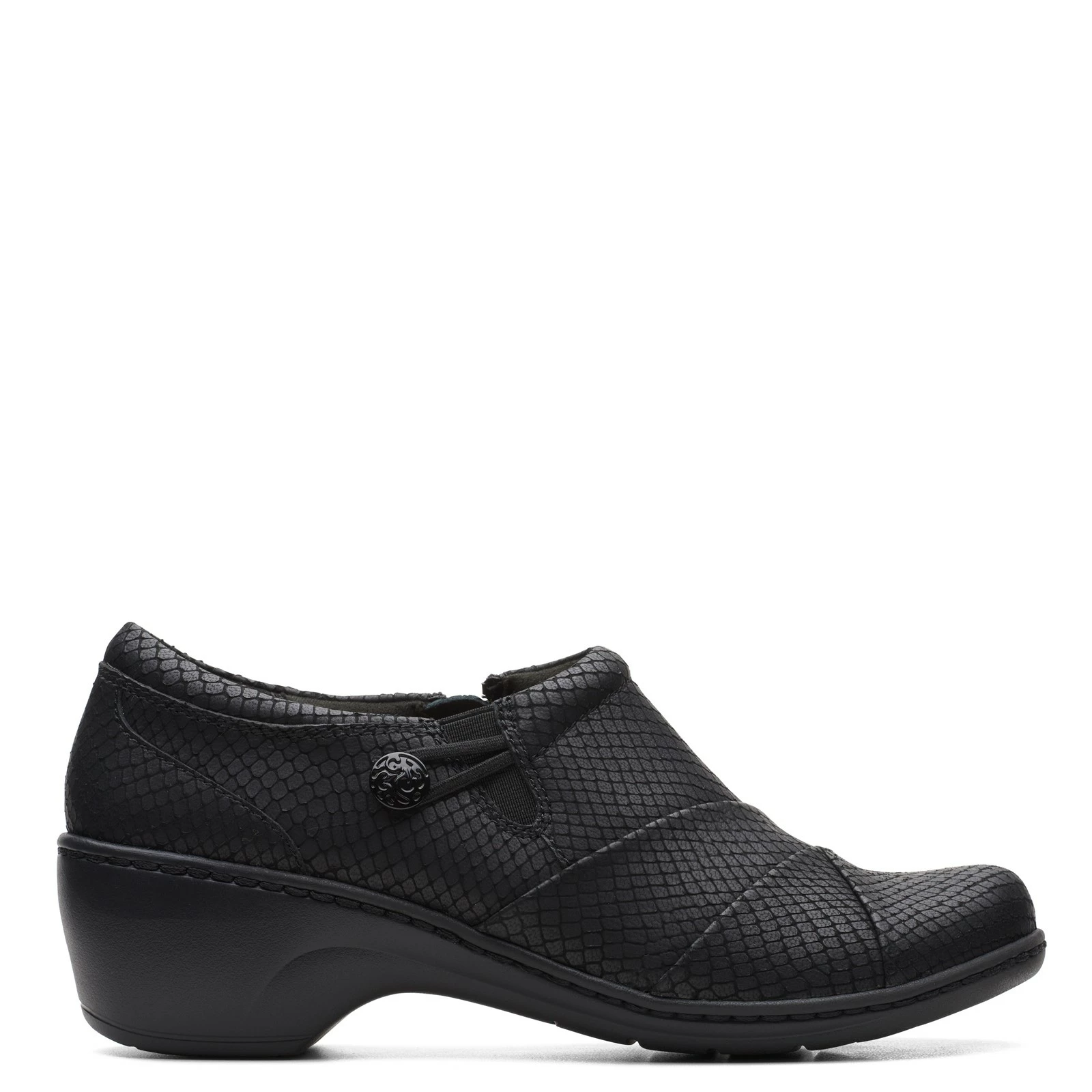 Women’s Clarks, Channing Ann Slip-On. This versatile slip-on features an easy to wear design that’s super comfortable and flexible. The supportive Ortholite footbed reduces impact and wicks away moisture, keeping your feet cool and cushioned.