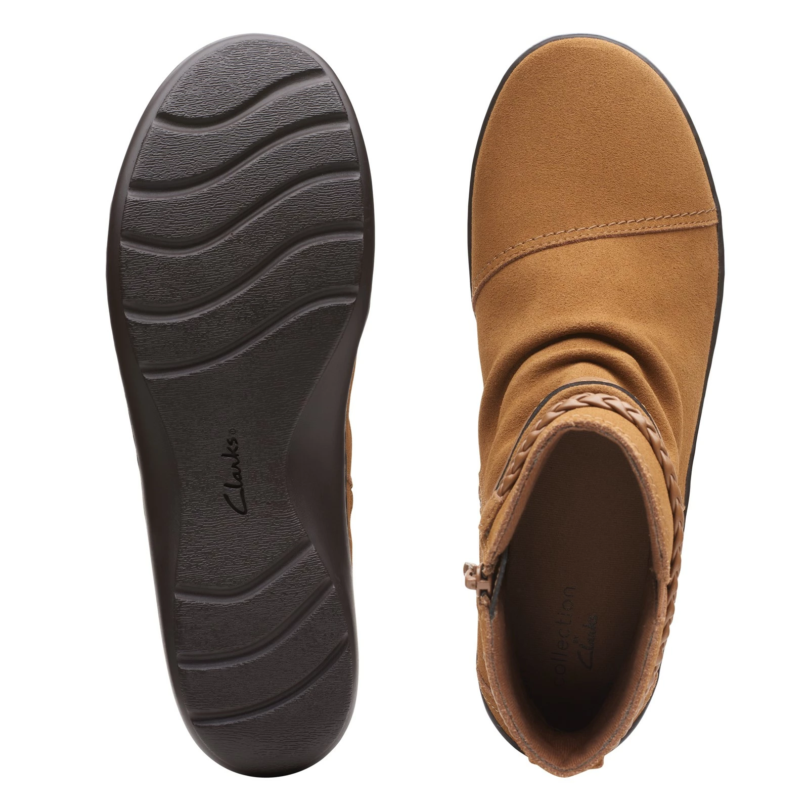 Women’s Clarks, Cora Braid Boot. Get all-day comfort from an anti-fatigue footbed with a memory foam layer in this stylish suede boot from Clarks. It has a side zipper closure for easy on and off, metal hardware and the timeless look of a braided strap.