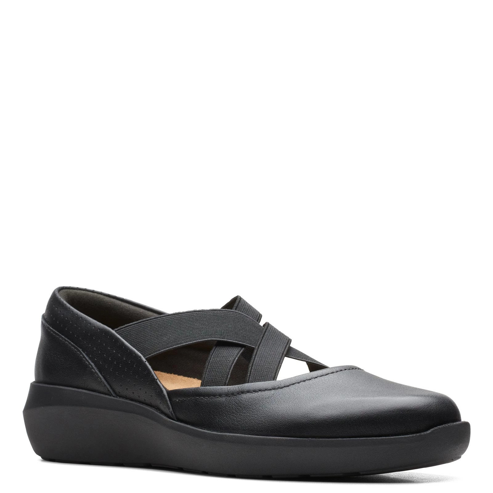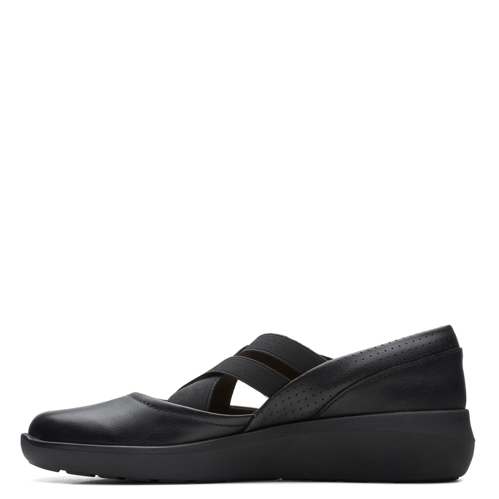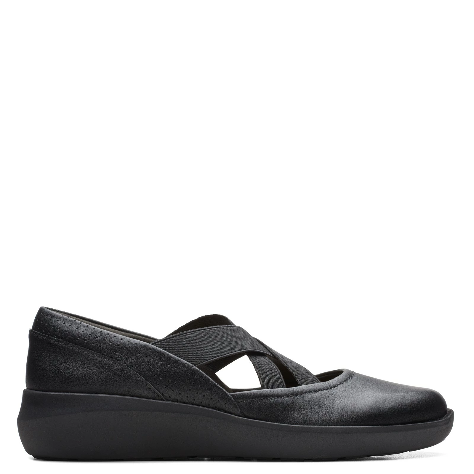 Women’s Clarks, Kayleigh Cove Slip-On. This easy to wear slip-on style features a leather and stretch upper for all day comfort. The soft and supportive Ortholite footbed reduces impact and wicks away moisture, keeping your feet cool and cushioned.