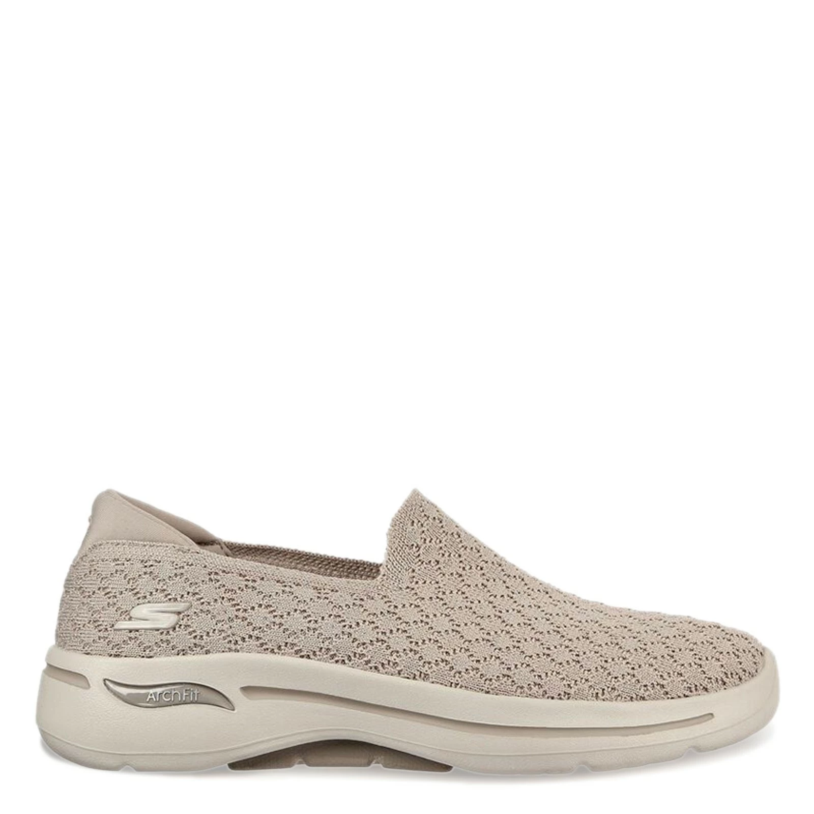 Women’s Skechers, GO WALK Arch Fit Slip-On. You’ll put your feet first in the Skechers GO WALK Arch Fit. This women’s slip-on shoe offers an extra step of supportive, all-day comfort with the patented Skechers Arch Fit insole system, developed with 20 years of data and 120,000 unweighted foot scans.