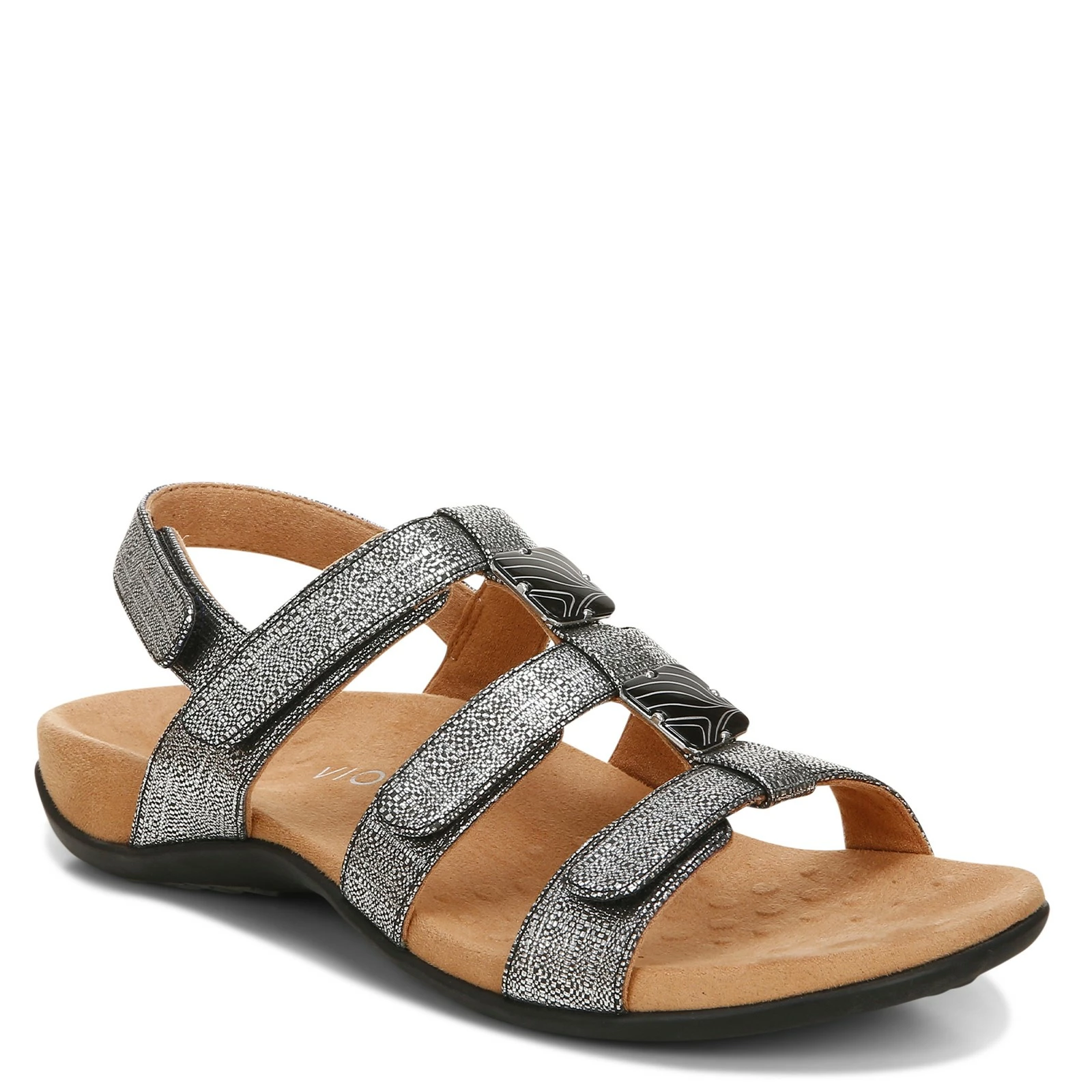 Women’s Vionic, Amber Sandal. Step out in all day in comfort with the Amber Sandal. This pretty sandal also offers total support and is clinically shown to help relieve common causes of plantar fasciitis, heel pain and knee pain due to over-pronation and flat feet.